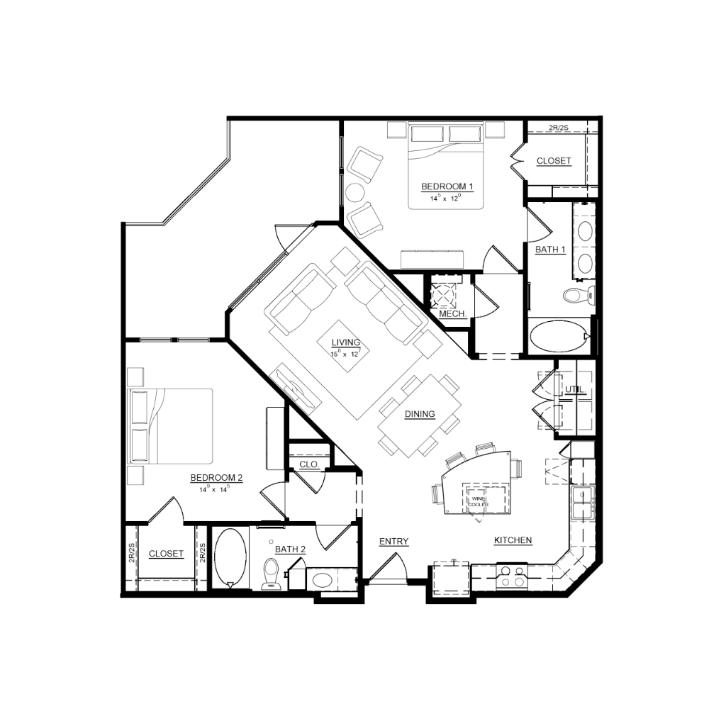 2 Bed / 2 Bath / 1225 sq. ft.