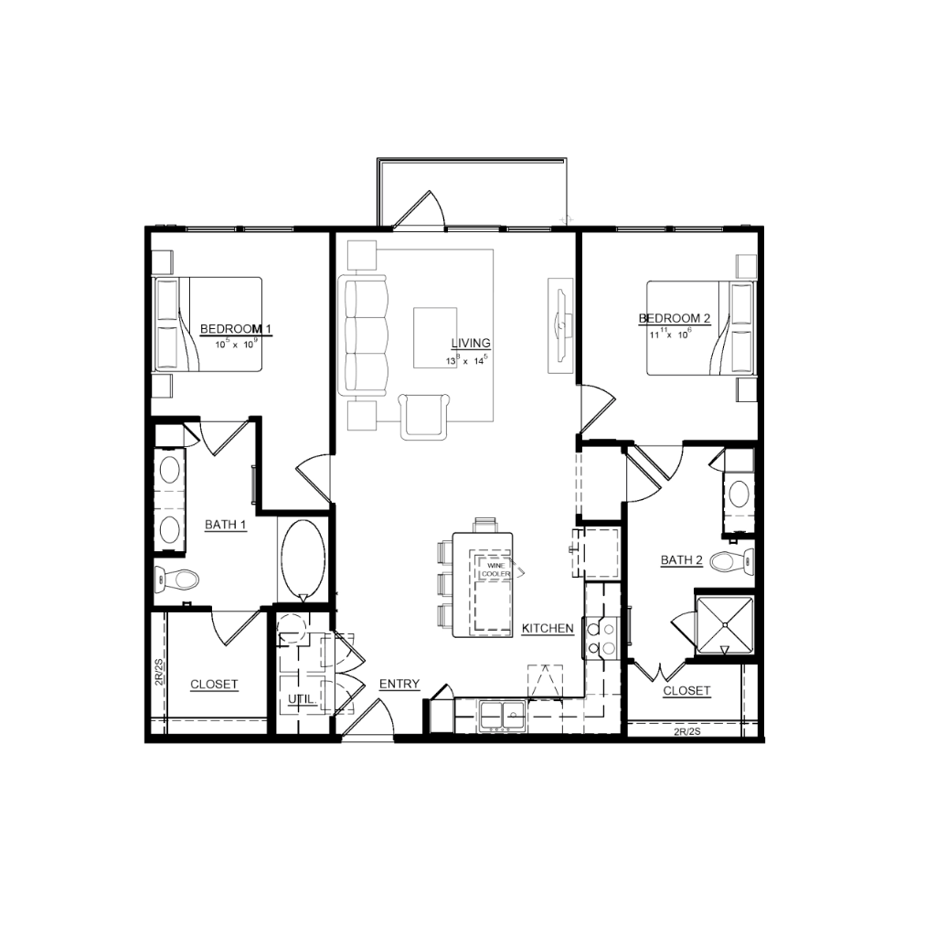 2 Bed / 2 Bath / 1080 sq. ft.