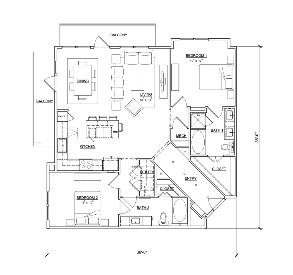 2 Bed / 2 Bath / 1250 sq. ft.