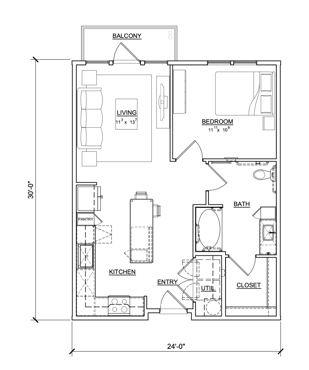 1 Bed / 1 Bath / 720 sq. ft.