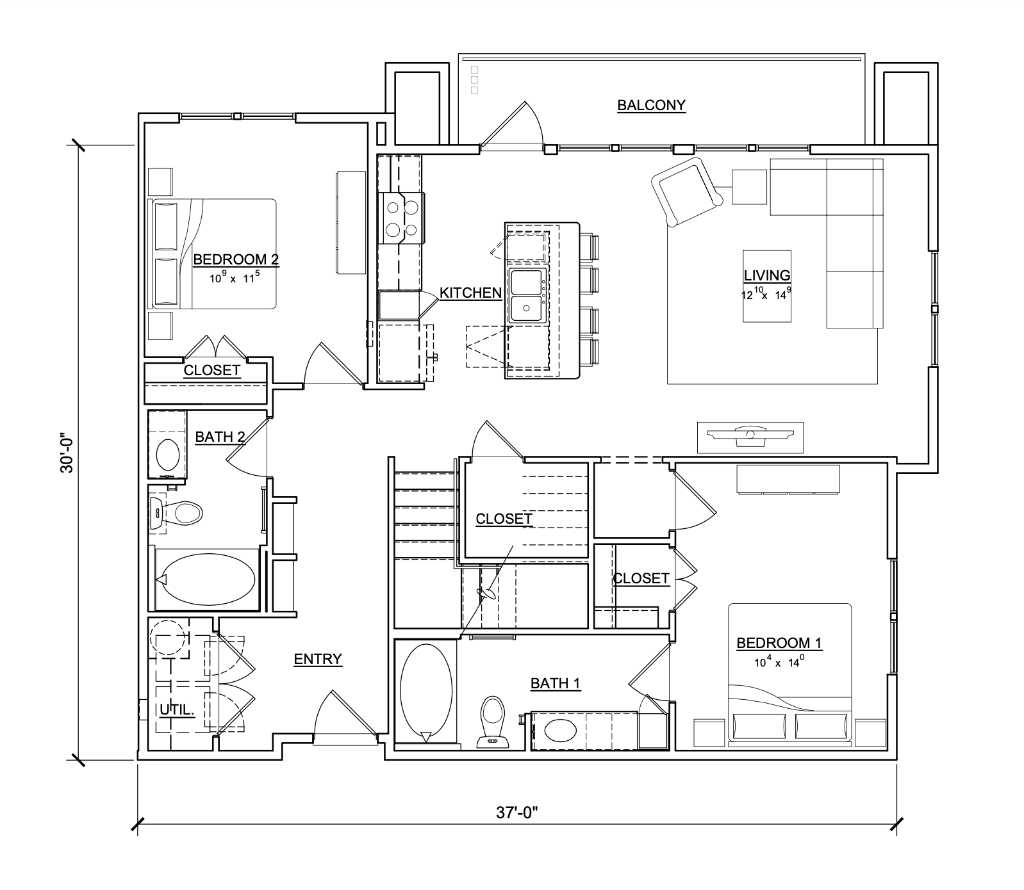 2 Bed / 2 Bath / 1110 sq. ft.