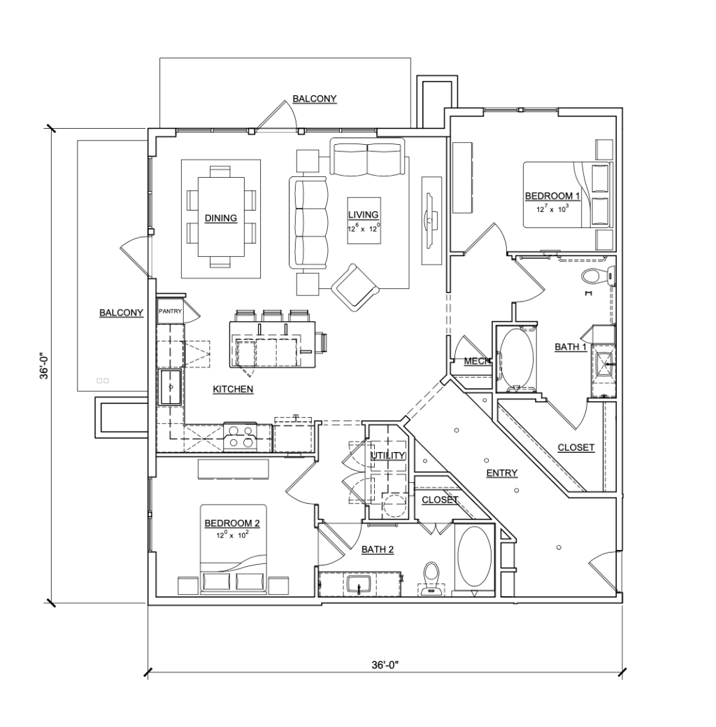 2 Bed / 2 Bath / 1240 sq. ft.