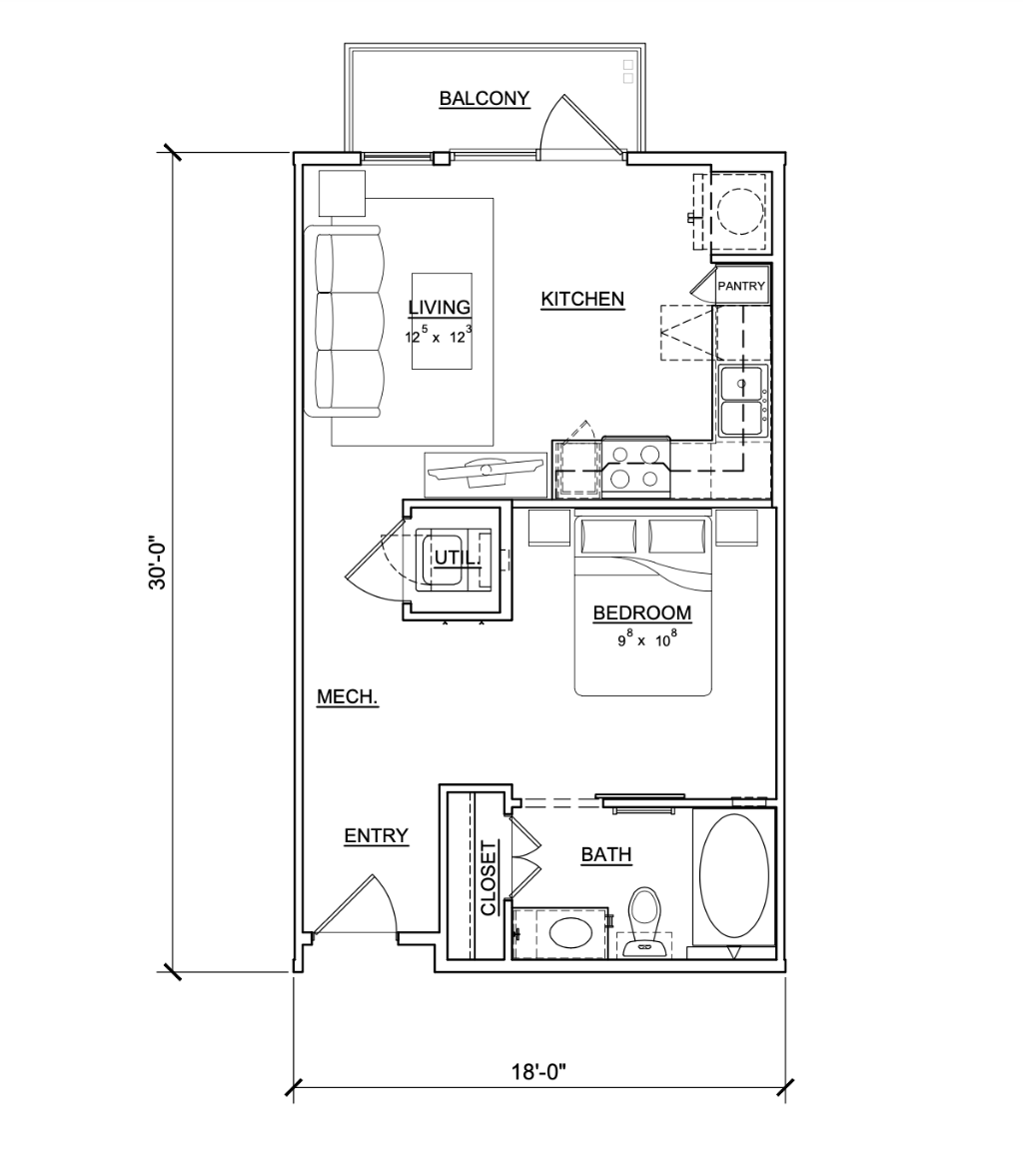 - Bed / 1 Bath / 540 sq. ft.